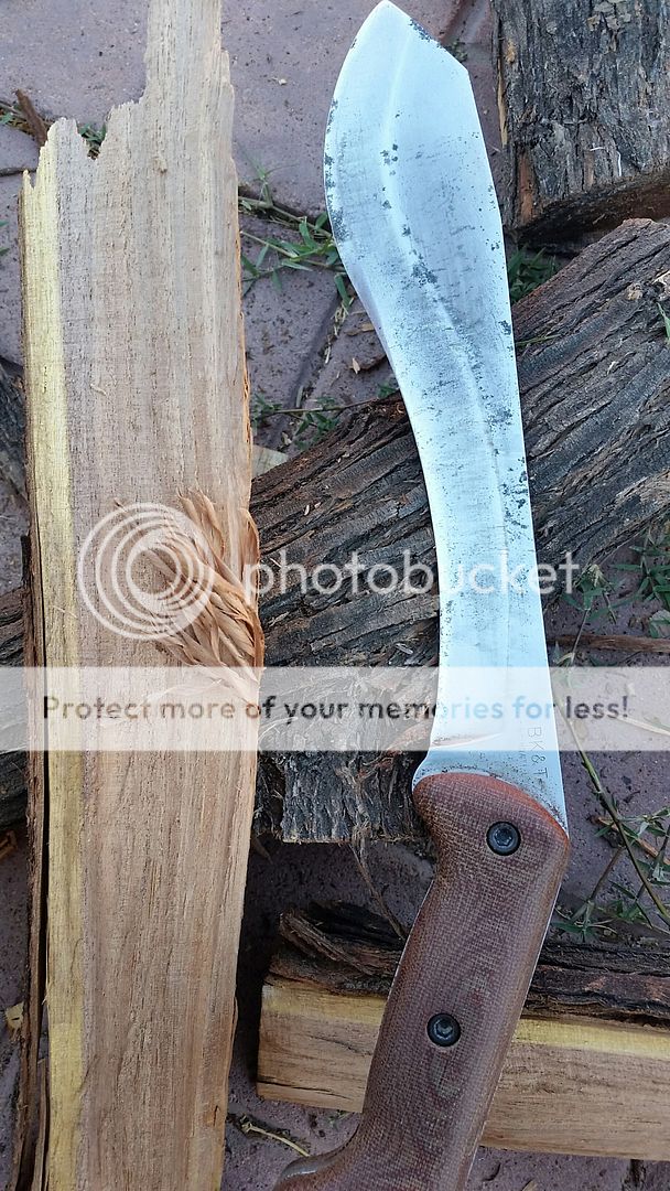 This Machax, being 1/4 inch thick basically POPS that wood apart. I also thought Id play around with my Habilis Bushtool that I had reprofiled to an almost full height convex grind.