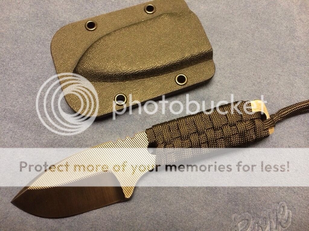 Blade is made from a file with a cutting edge of 2 ¼ inches. Overall length is about 5 7/8 inches. Handle is cord wrapped and this knife has the gun blue finish. Sheath is kydex. The knife rattles in the sheath, but from my research this is by design so that the knife will be tight but removable from sheath when worn and drawn.