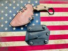Bought used like new on this forum and never used by me. Shows some wear on blade finish but is only from sheath. Comes with very sharp double edge CPM-CRU blade, fde G-10 slabs, and well fitting kydex and Lester sheaths. Both sheaths are reversible for left or right hand carry. No box, as pictured.