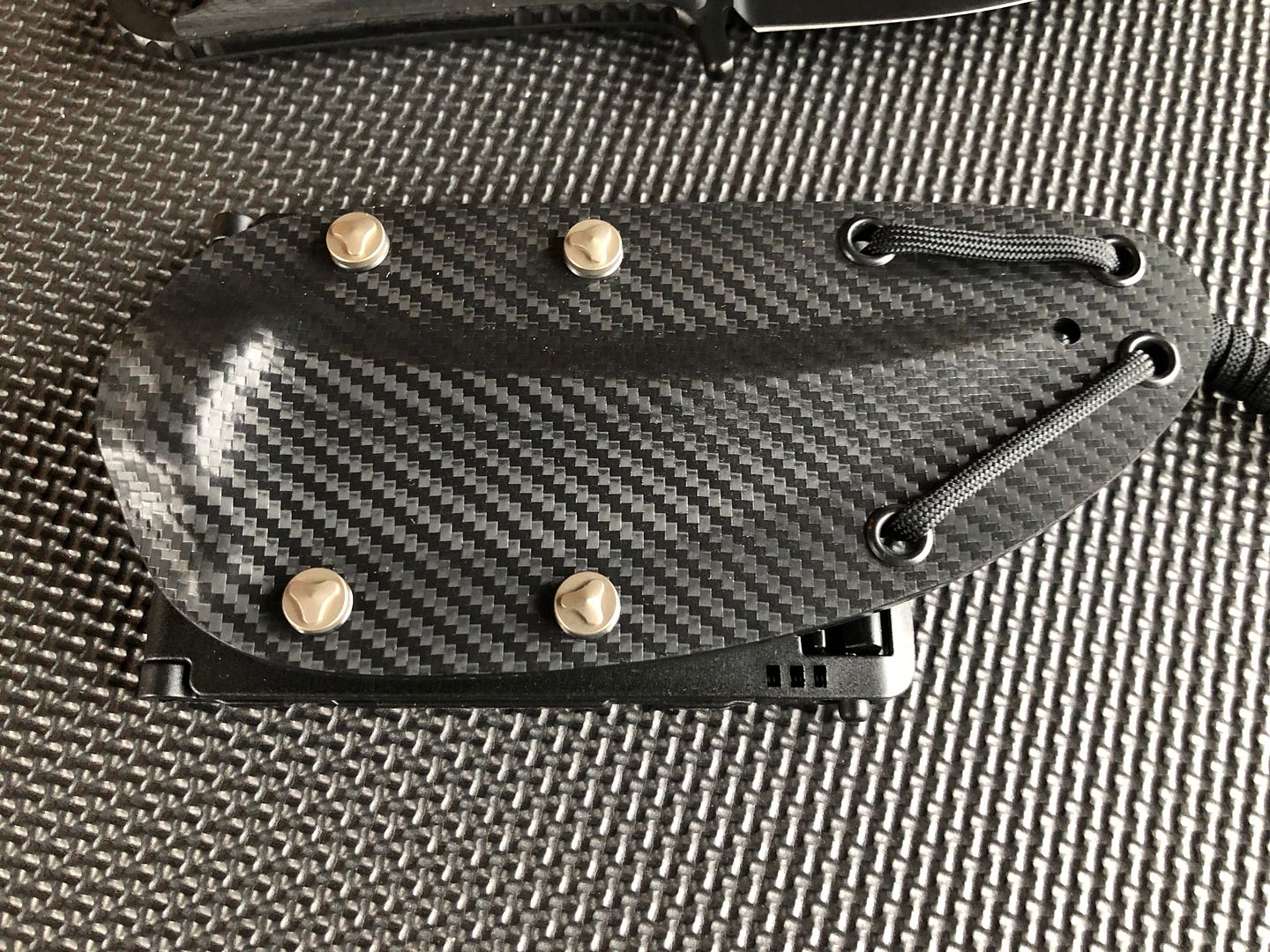 NIB Microtech SBK with the DLC coating, carbon fiber scales and beautiful kydex carbon fiber style sheath. These are out of production now. Very impressive knife in M390 steel. ---Sold---