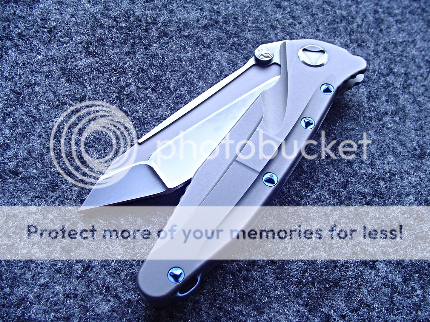 Up for sale is a near mint, custom Tony Marifone Socom Delta. This one has the beta titanium. It also has blue anodized screws, backspacer etc..looks incredible. The blade is the hand rubbed satin finish. Blade is perfectly centered, action is smooth as it gets. One of the best built knives I've ever held...awesome! Comes with original box and zippered case. Pics aren't the greatest, sorry.
