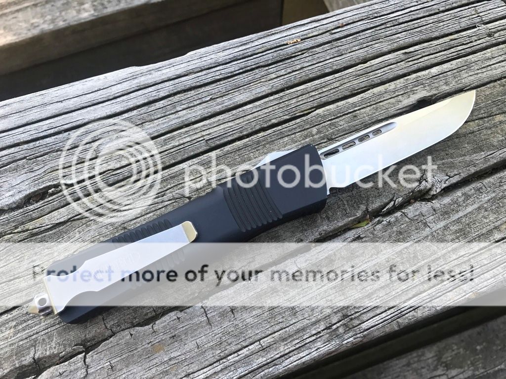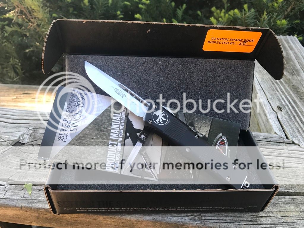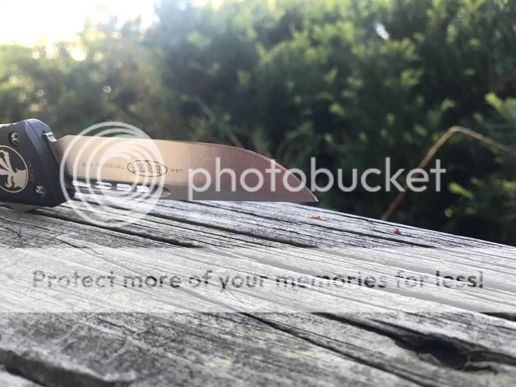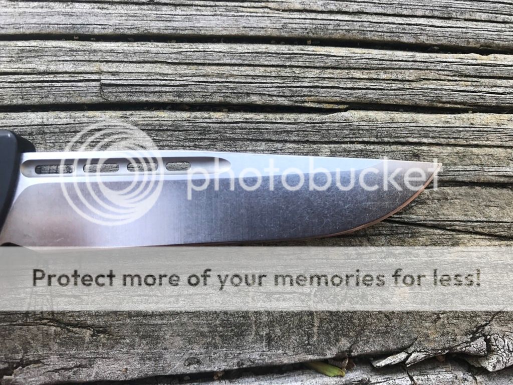 I am the original owner and I have lightly carried and used the knife. It is in excellent condition and the action is terrific. It has an Elmax, stonewashed, single edge, plain edge blade. Could use to be sharpened as the edge has a couple small flats spot on the last 1/2 inch of the blade near the tip. Original box and paperwork are included.