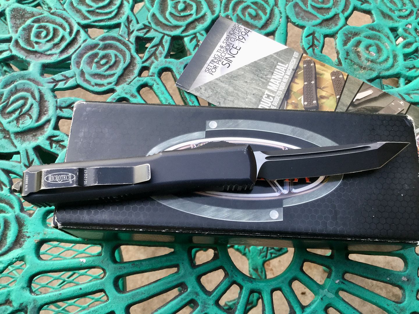 Here I have a used Microtech Ultratech 123-1 Tactical plain tanto blade for sale. Blade is in great shape. Fires hard. 10/2017 manufacture date. Price is $185 shipped. Don’t offer to buy if you can’t legally own.