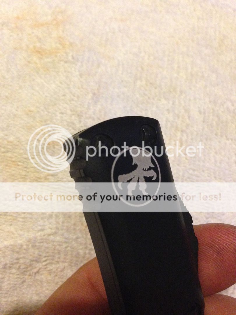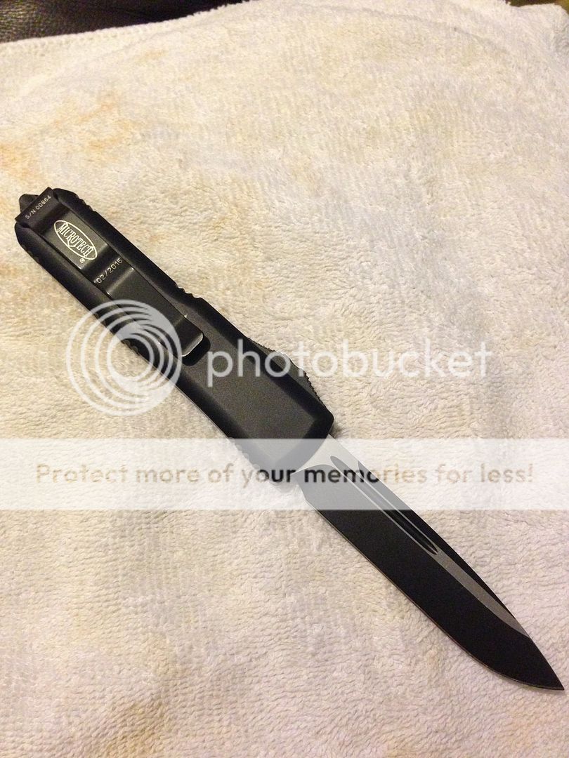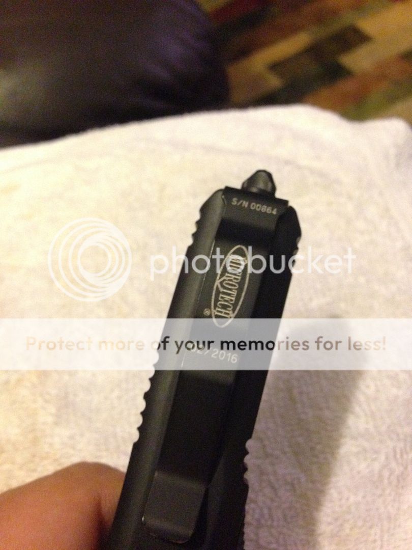 This was carried and used lightly. Shows some signs of carry - couple marks on the pocket clip and one spot on the front/top where it fell on my tile floor. (Was closed- see picture) . Very smooth action- the nicest Microtech action I've owned. I've had an ultratech, older utx85, and executive scarab- this beat them all for edc hands down .. the switch and break are super smooth. Really fun to play with