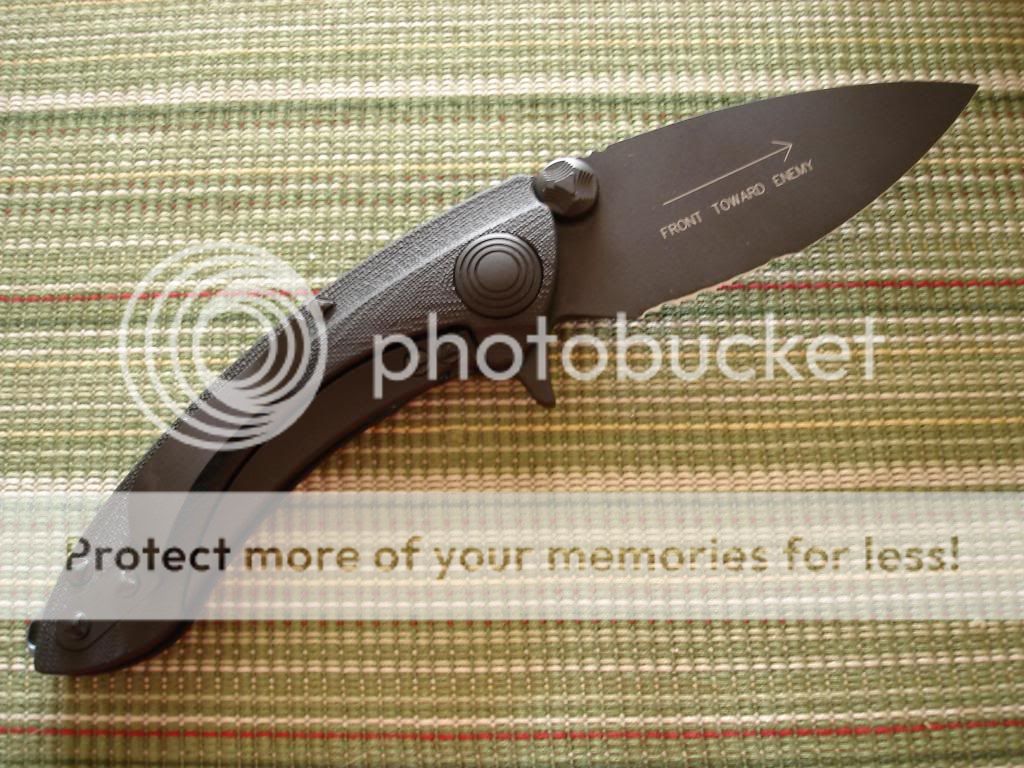 New in box. All blacked out blade and hardware with blue Ti back spacer half serrated. $(WITHDRAWN FOR NOW) shipped