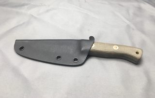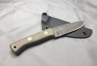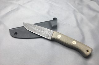 – Handle: Olive drab canvas micarta, with brass and nickel Loveless bolts