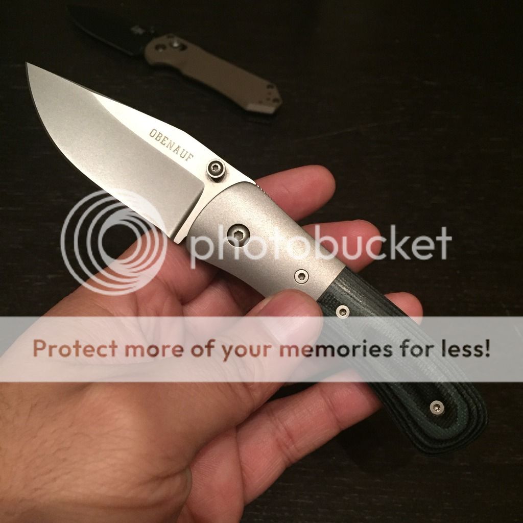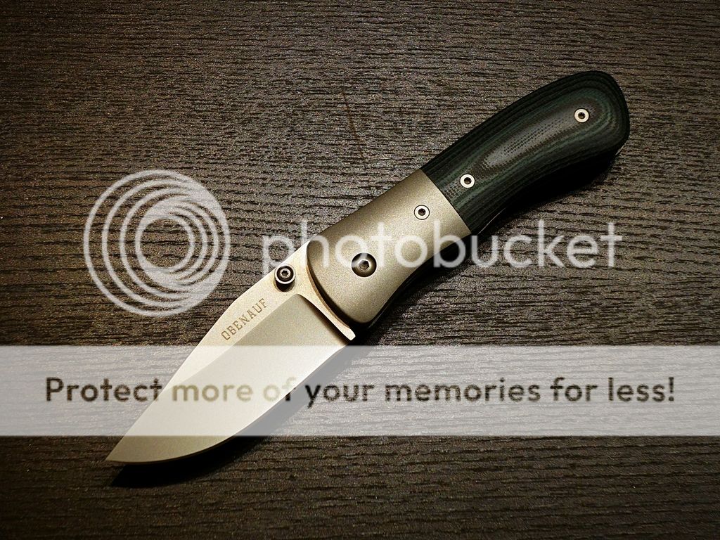 Up for sale is my Obenauf Small Model 2. The knife is perfect in every way, very solid lock up, smooth action, perfect centering. I believe the blade is S30v with titanium bolsters and green G10 scales. It has a solid backspacer and thick Ti liners. I had Josh at Razor Edge knives even up the edge bevel so the knife is extremely sharp with a new edge.