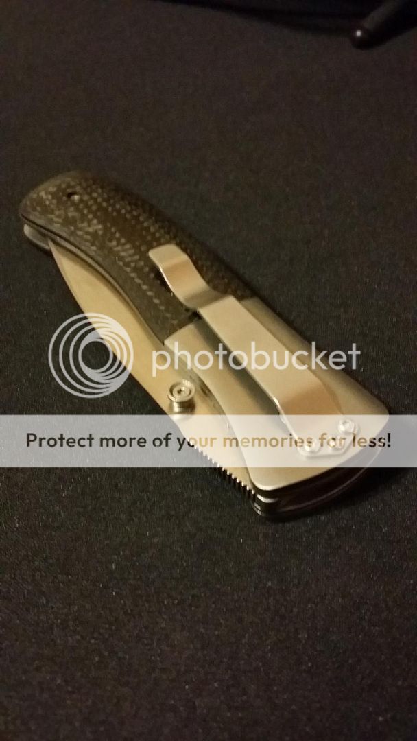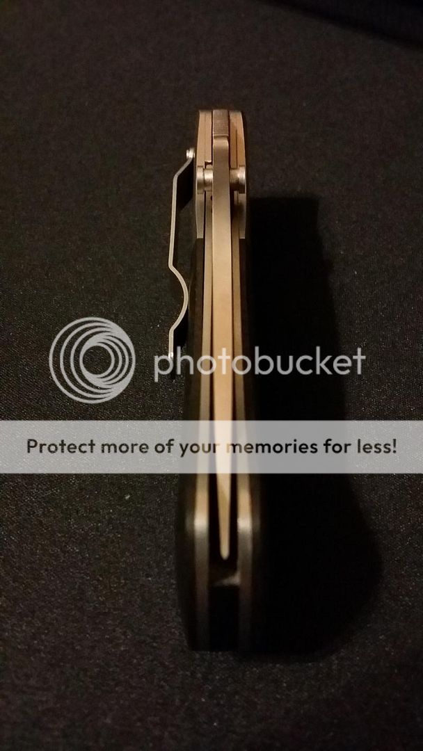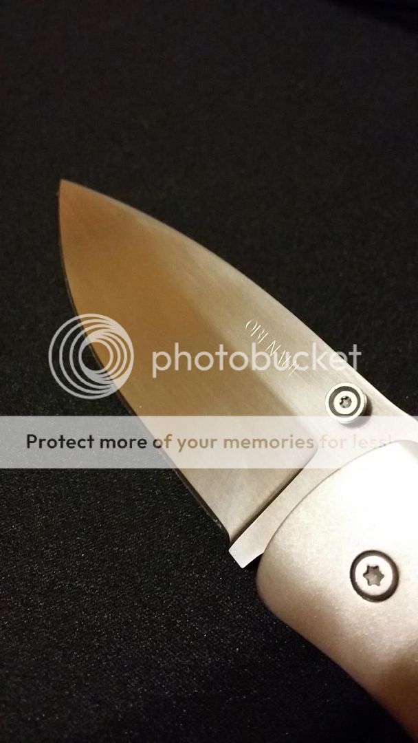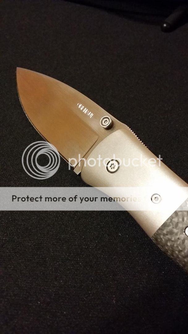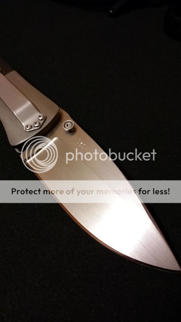 Titanium/Carbon Fiber Bolsters, very very feint snail trail on the presentation side. Hardly noticeable but want to disclose. Looks to have been sharpened by previous owner.