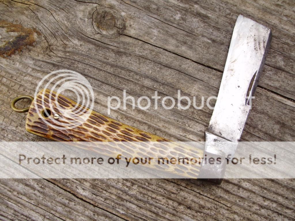 I came across a neat old find today: an old Miller Bros rope knife. My research on the brand tells me the company made knives between 1872 and 1927, so it's possibly the oldest and rarest in my humble collection. I want to clean it up a bit, and keep it from rusting, but wouldn't mind a bit of advice first. Usually, to clean an old knife, I make a paste of baking soda and dish soap, and scrub with a toothbrush. Then I fill the well with mineral oil and let that sit and soak a while, then blow out the oil and gunk with compressed air. I repeat this until the oil comes out clean. I want to be cautious with this one, and I don't know if the oil could soften or damage the bone. Any suggestions?