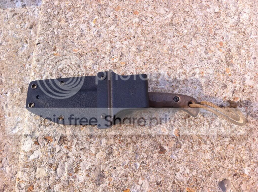 This is an AWESOME, heavy duty blade. Knife is in new condition and hasn't cut anything. It's very sharp. I'm including the belt loop for the sheath which doesn't come standard with the knife. It's pretty cool as it is reversible and can be setup for IWB or OWB.
