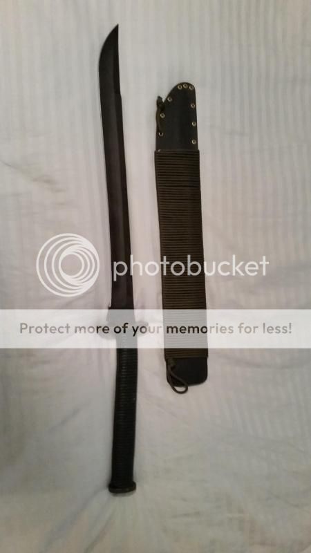 Customer sword from Mineral Mountain Hatchet Works. Bought it 4 months ago and it has never been used. Overall length 29.5", cutting edge 18", blade width 2", steep thickness 1/4" (5160), weight 3lbs, differentially heat-treated. Bought it for $650 asking $400 OBO shipped.