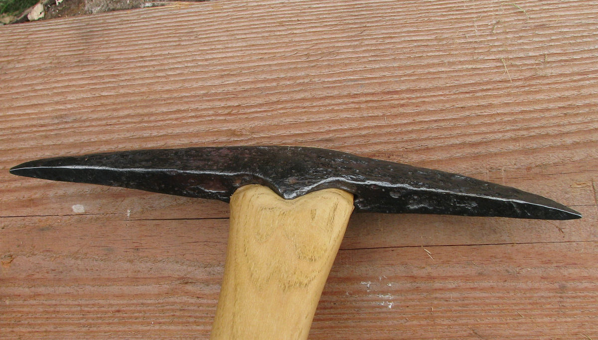Here it is as it came to me last year. Rather than grind away metal to re-point this pick I decided to draw out the points on the anvil.