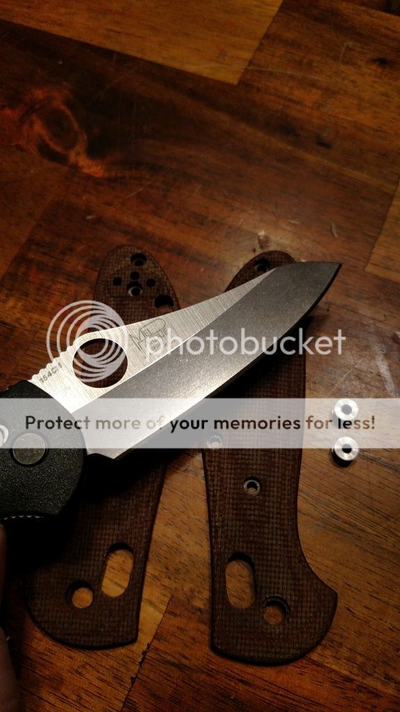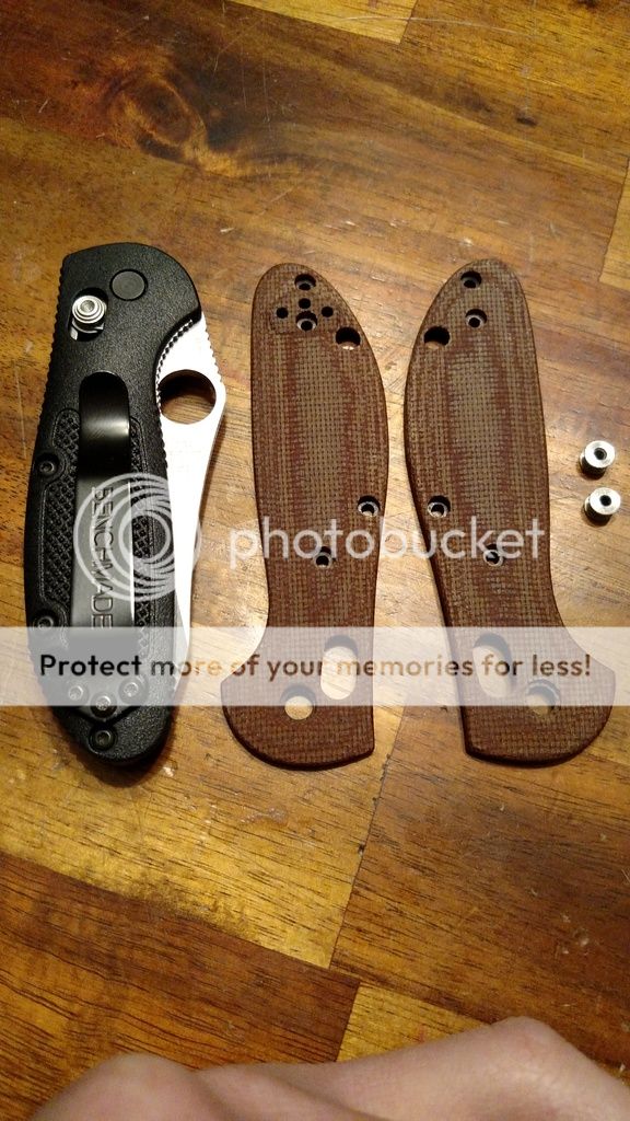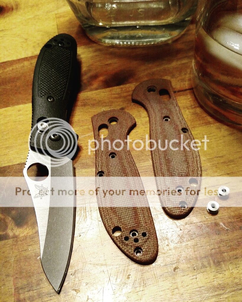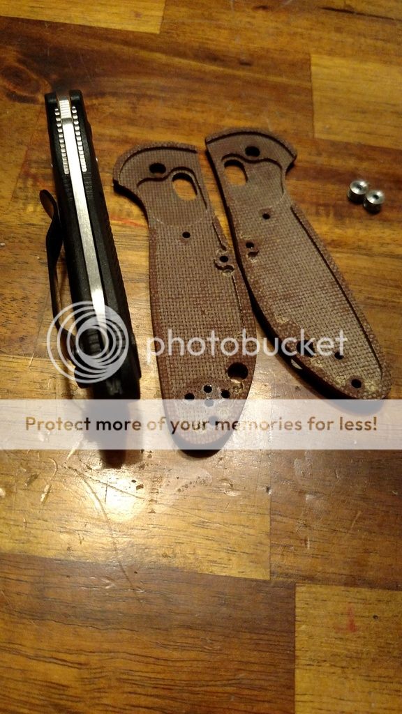 Next up is a set of micarta scales for a mini grip. These were sold to me as death of all thing's grips, and i have no reason to believe otherwise..fit and finish is perfect! Tried to capture the fantastic coloring in the pictures. Hardware included (two backspacers, 4 screws and instructions).
