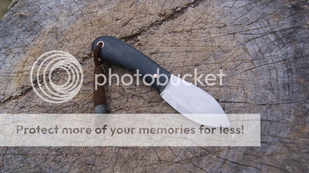 HK Mini Muk, 3/32" 01 carbon steel, Black Canvas Micarta with Copper 1/8" front pin and lanyard hole, lanyard comes with bead made from excess scale material.