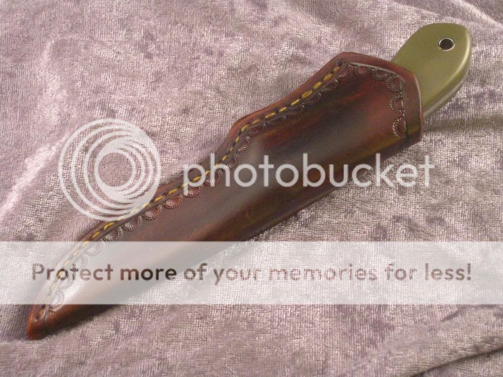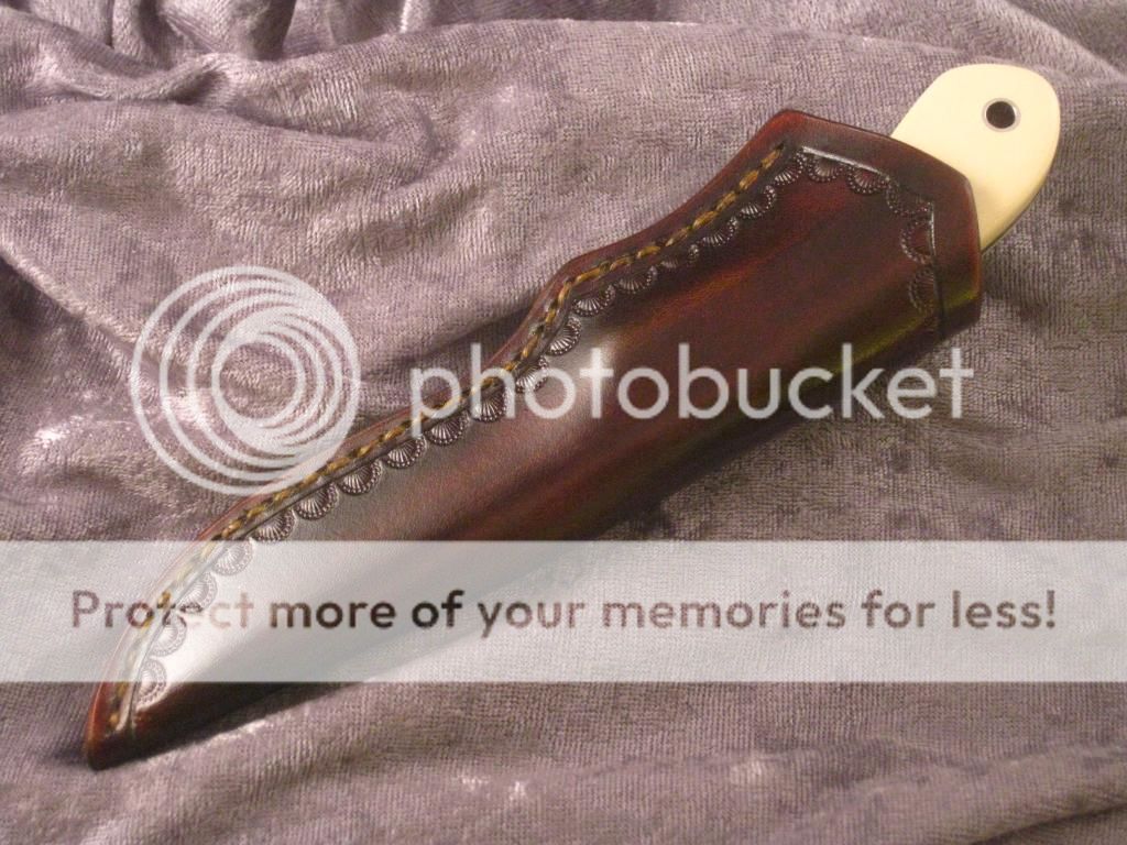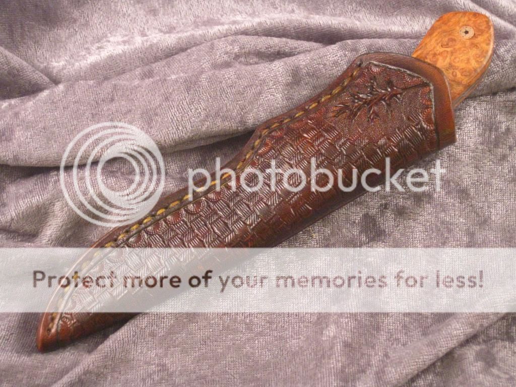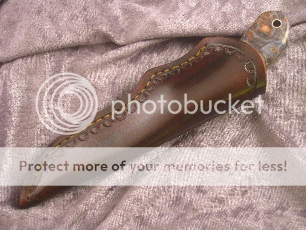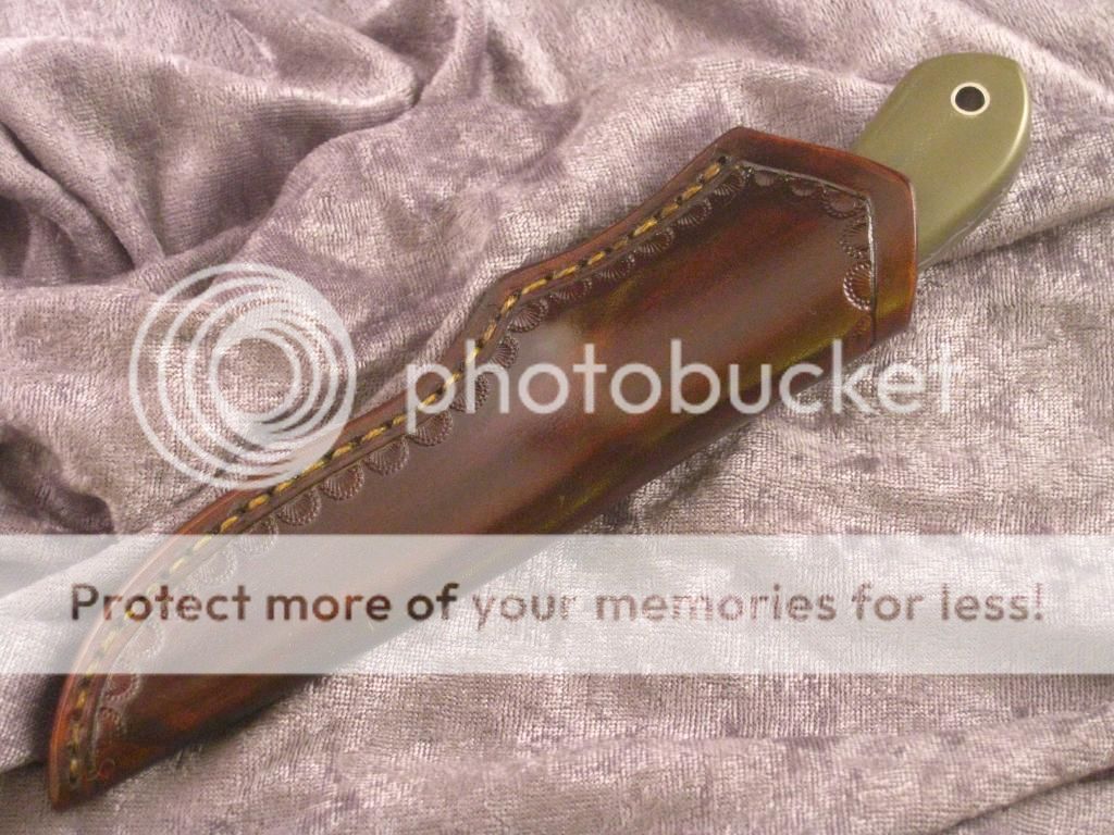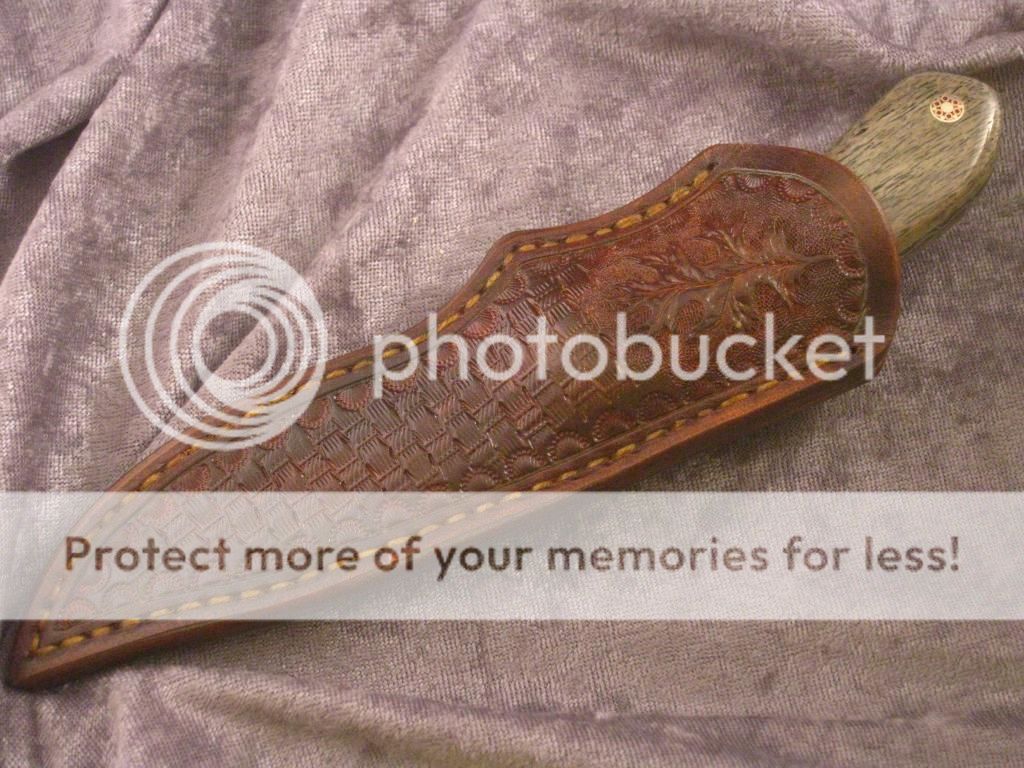 Sheath: : 6-7 oz premium leather sheath, Hand tooled for right hand carry