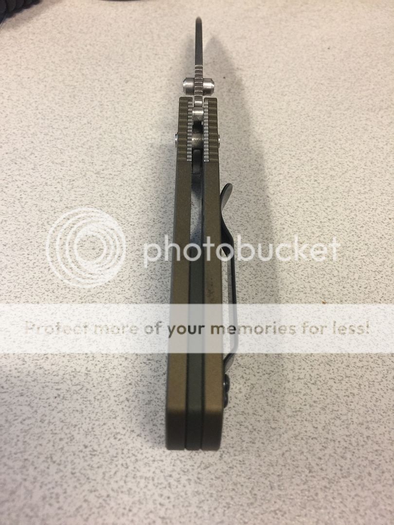 Has been carried and used lightly, blade is in perfect shape, the scales show one minor scuff, the clip has some scratches. Dead center when closed with perfect lockup, M390 steel. This is one of the best knife/handle combos I've ever used (I have two of these) AWT scales are flat dark earth, with a dark OD backspacer. Price updated to $140 (note the stock scales have been sold separately) shipped in the US.