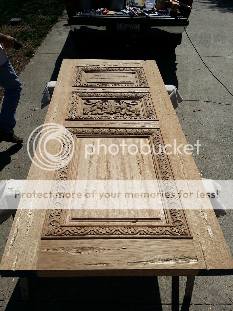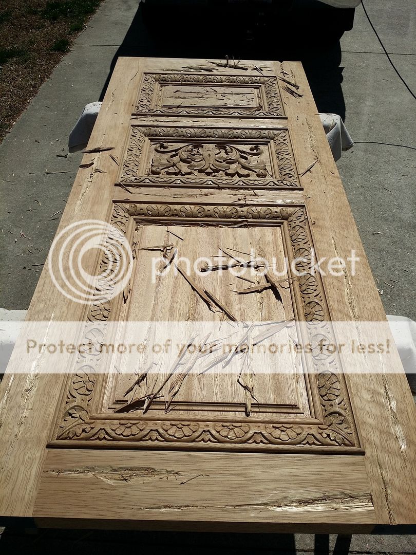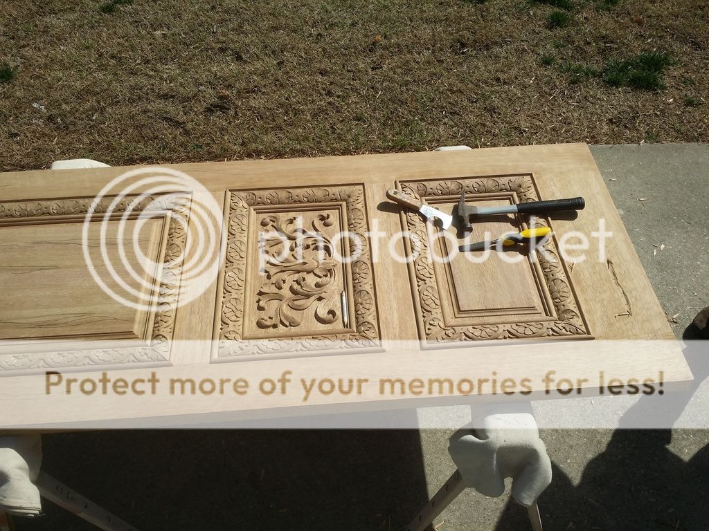Here are the final chops on the curly Brazilian mahogany hand carved door... I got a confirmation from the builder that this door was $2,787, then they are paying me big bucks per hour to destroy this and 6 other doors. The other doors are made from knotty Alder.