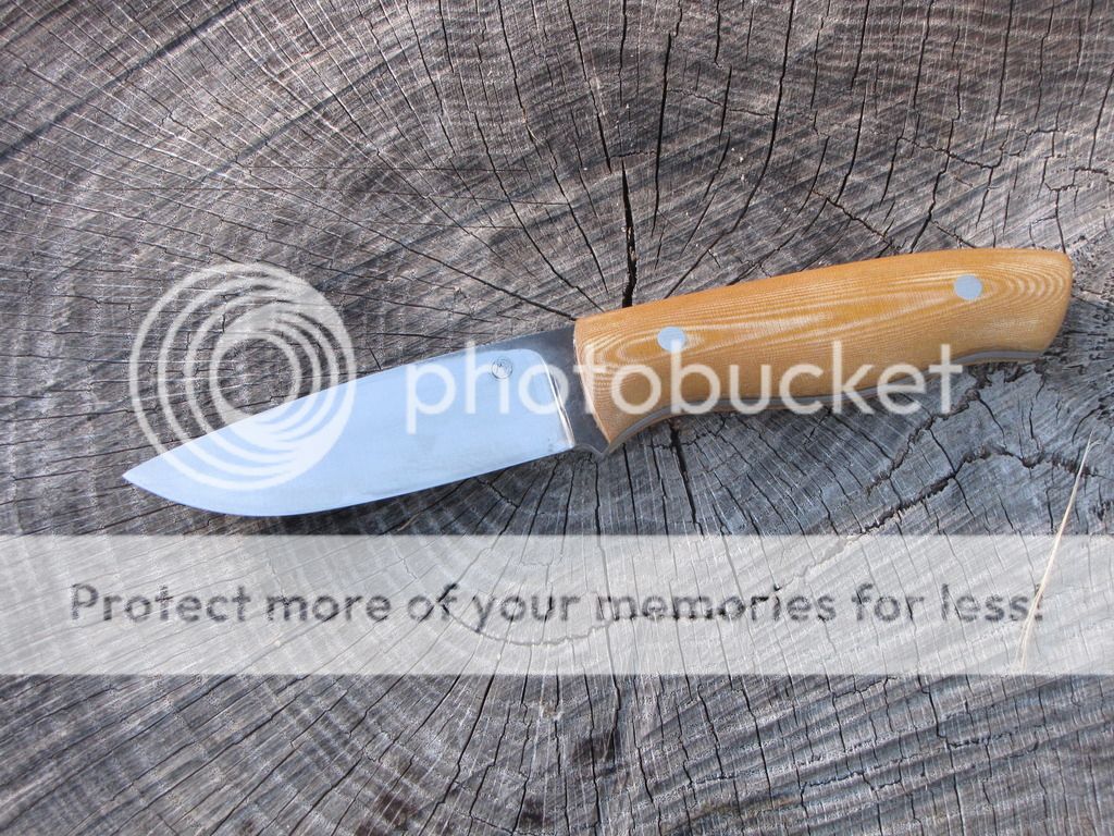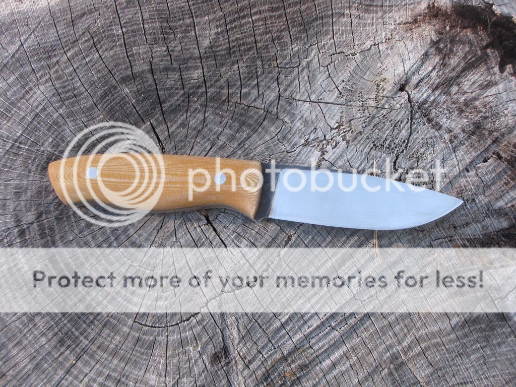 Here's two Model #4's from 1/8" 52100, one with black linen micarta one with natural linen micarta. Blades are 4 1/8" with machine finish. Heat treated to 58-59 RC. Jimping on the spine. Handles are 4 1/2" with stainless corby bolts. Each comes with leather sheath.