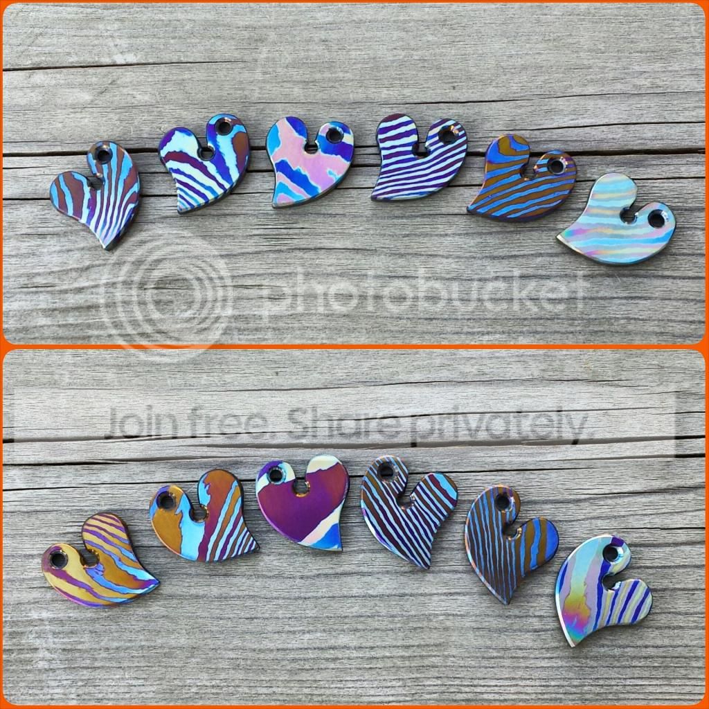 The Timascus pendants are hand rubbed to 1000 grit then heat anodized. The colors are very dynamic and the contrast is crazy.