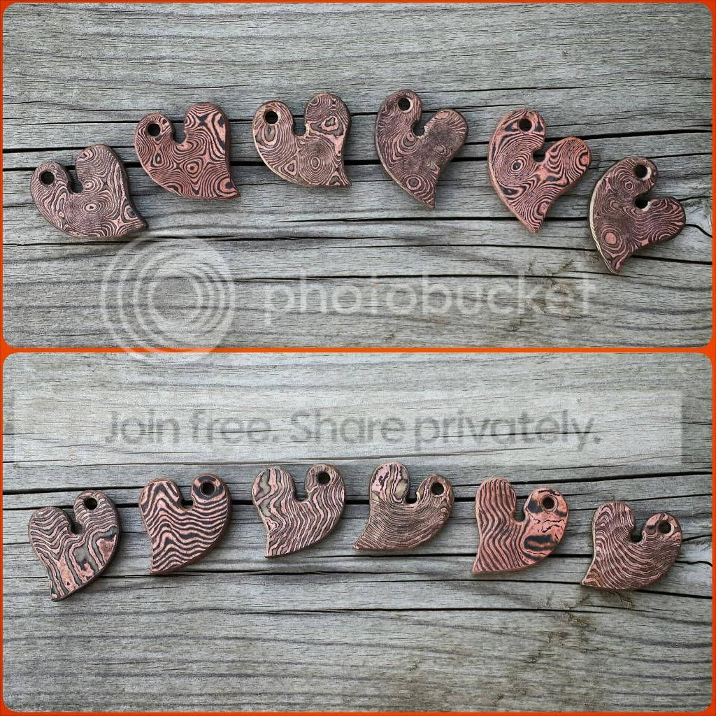 The mokume pendants are hammered and given a forced patina for what I call my "relic" finish. Very interesting pieces, they have the feel of coming off of an old sunken ship.