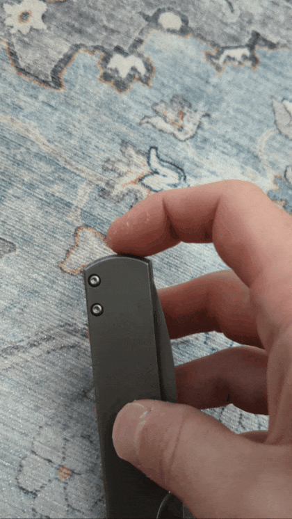 Here are some overview pictures. I have sharpened it; it came sharp but was very obtuse--classic "show edge". The smaller screws and stop pin are steel, and the other body pieces are titanium. There's no side to side play, and it was very smooth after a dozen openings, though before that there was light lock stick (oil perhaps?) and felt gritty (rough stonewash finish perhaps?).