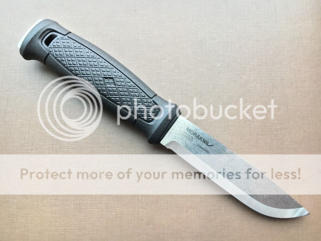 The blade is 0.13" thick and 4.3" long. It is made of high-quality Swedish stainless steel (14C28N) that is treated to the highest quality in their own factory.