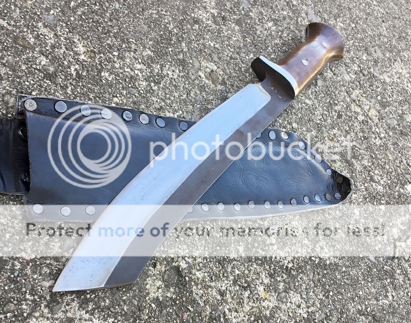 This makes an excellent camping, Bushcrafting, light batoning and self defense on wilderness. Sharp and ready for action. I have left the forging marks on top. Looks very beautiful. Pictures don't do justice for this knife. Sheath made with Military Boot Leather. Handle is made from wood and is.4.8 inches long. Full tang and Satisal wood handle.