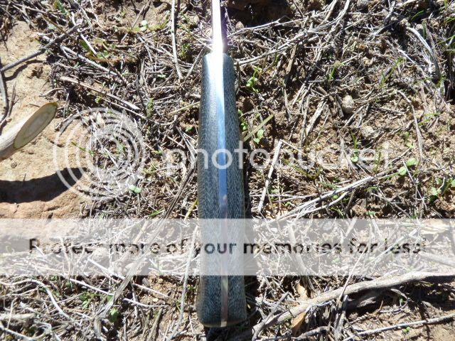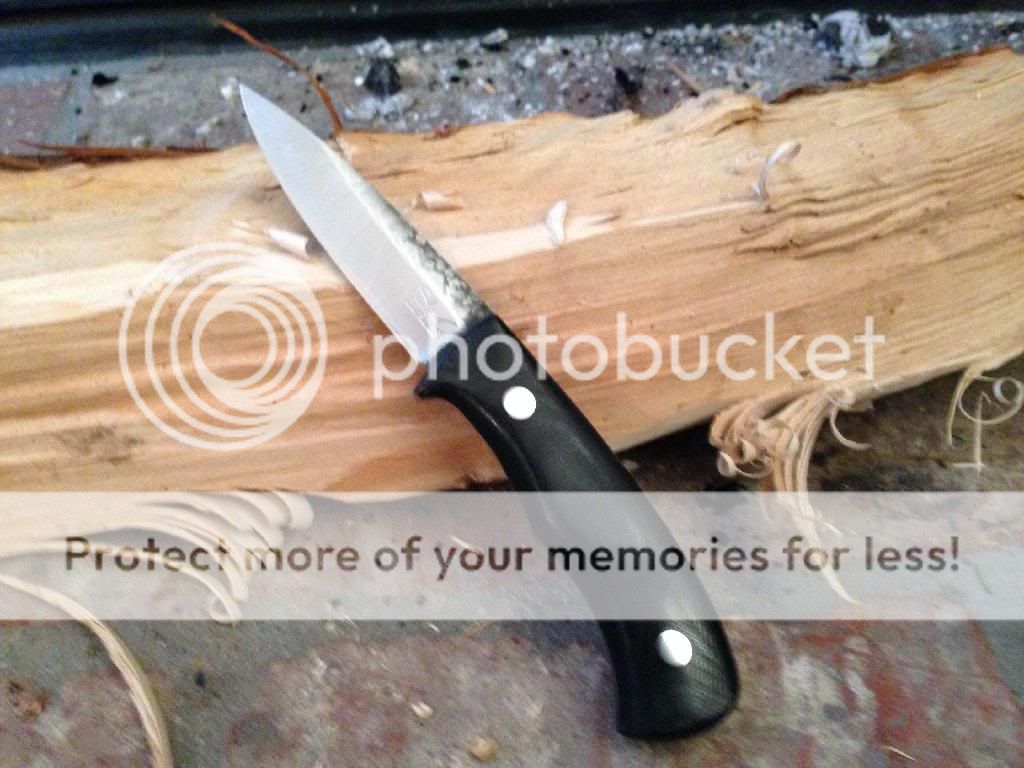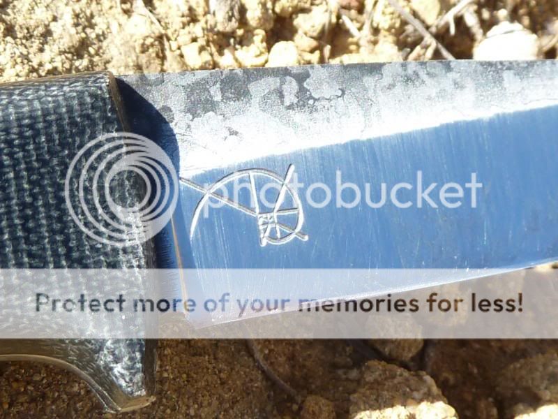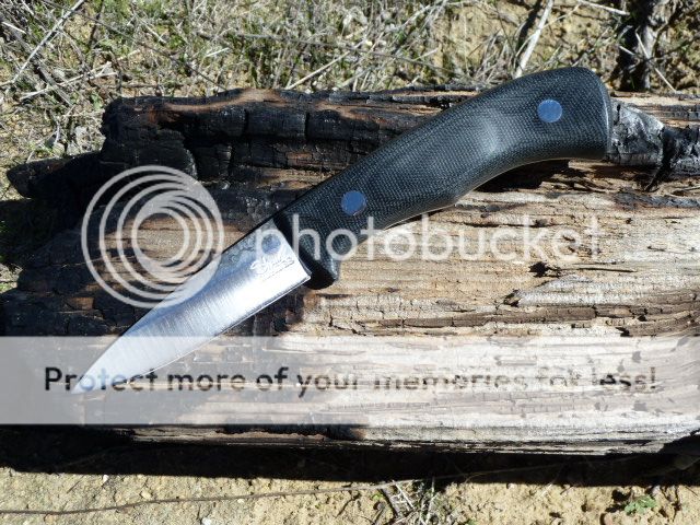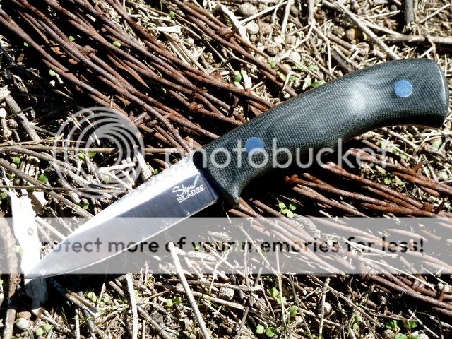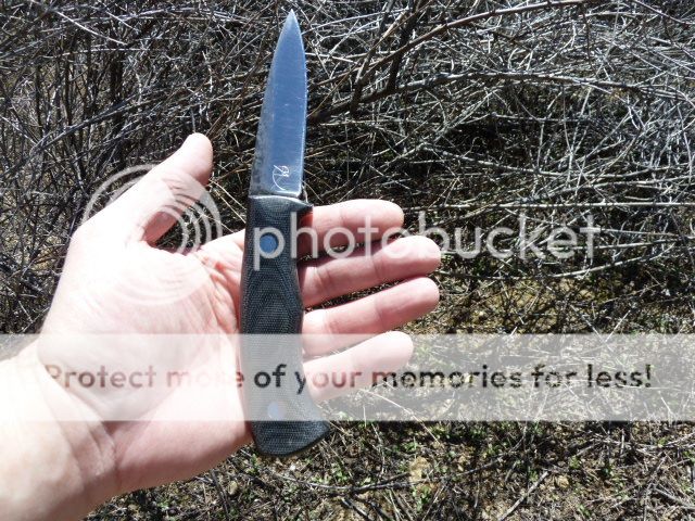 I saw this posted in the makers for sale section couple weeks ago, and it instantly grabbed my attention. I let it linger for a few hours, hoping that someone would buy it and it would stop tempting me! But in the end, I jumped on it. The maker is Mitchell Shaw, and I believe this is the first knife that he sold on BF. Steel is 52100, 1/8" thick, blade is about 3 1/2" and it's just about 8" overall.