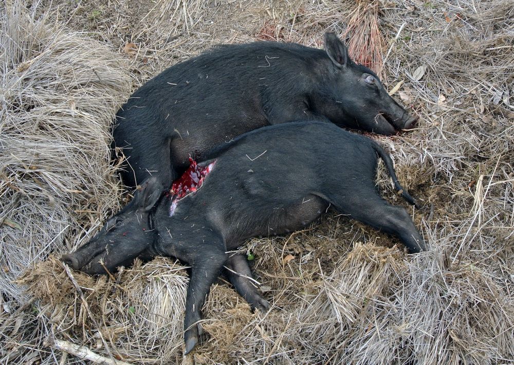 A couple of hogs I shot up here in a flying visit in late February.... you can see how dry it was then !! About 4 inches of rain fell between them and this visit but still not enough to get it right !!