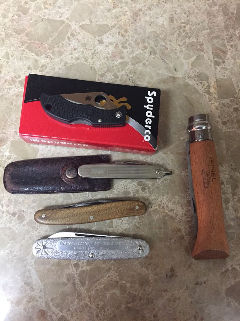 Before anyone whines...yes I included a Spyderco. It is a lockback with no clip that goes great on a keychain! I also added one of my own mods, a Colonial to which I added Lignum Vitae covers. Rounding out my additions are an Imperial pen knife, a Carbon Opinal, and (one of my favorite work carries) a Schrade Aluminum advertising knife.