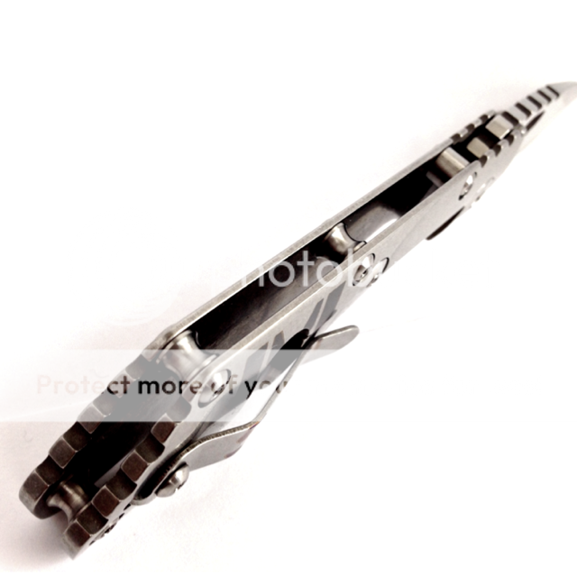 SPF SPF SPF SPF SPF SPF MSC SMF with full titanium hardware and a beautiful dagger ground blade. This one has CTS-204P blade steel and is in new condition with no flaws. Lock up is early and the blade is centered.