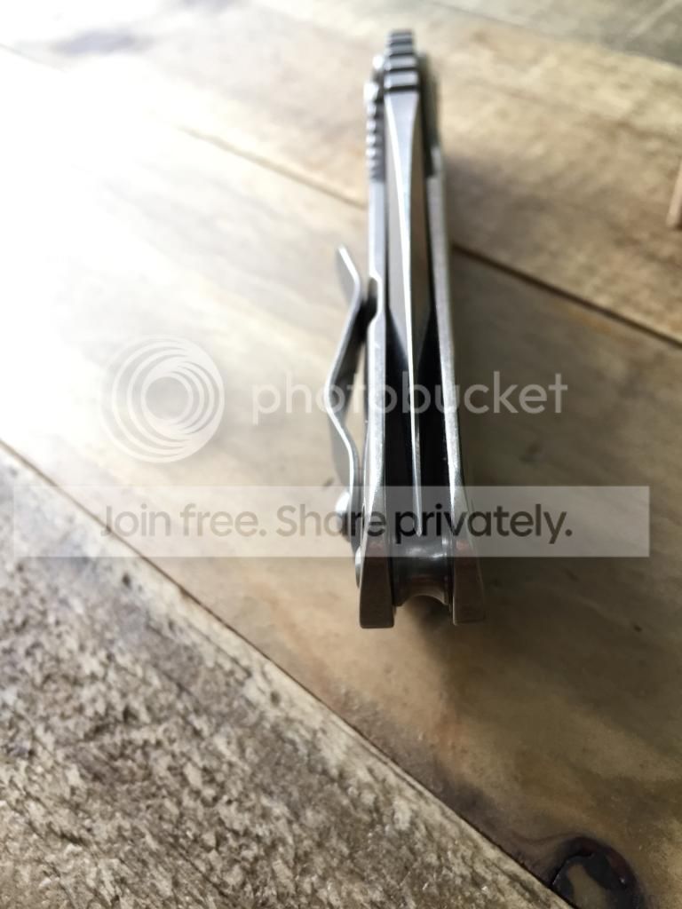 Mosier Crossfire mid-tech customized by Mosier with a nice bronze orange peel finish on the scales and a dark acid-washed blade. This knife also has a custom "milled" style pocket clip. The knife is in new condition and the lock up is solid/blade is centered. The detent is very strong so please only buy this if you prefer a strong and snappy detent.