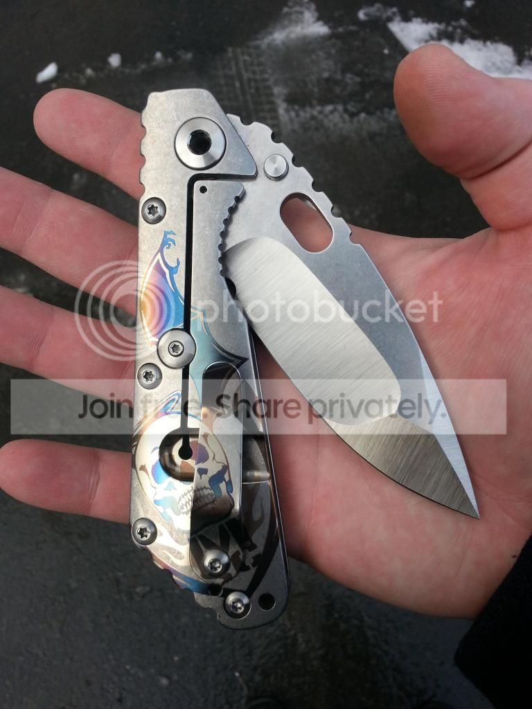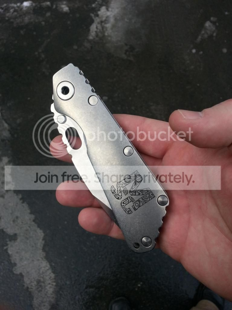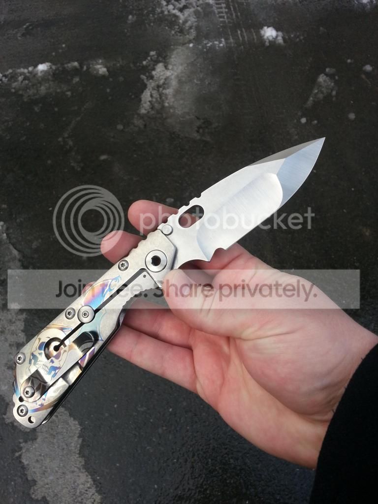 I have FOR SALE a Mick Strider Custom SMF with Nightmare grind. This knife is in like new condition, used only to cut a few pieces of paper. Included with knife is a pouch with MSC patch.