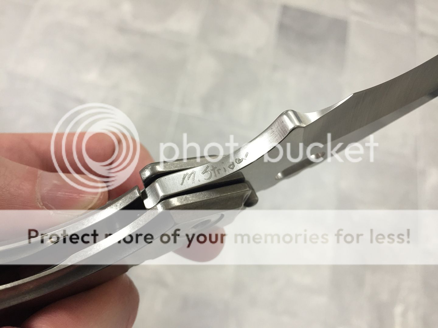 Selling my Mick Strider Custom XL. Perfect in every way you would expect from Mick. This one has the dragon spine on the blade. The blade has nice and early solid lockup when open and is dead center when closed. This knife has not been carried. It has not cut anything. It has only been photographed.