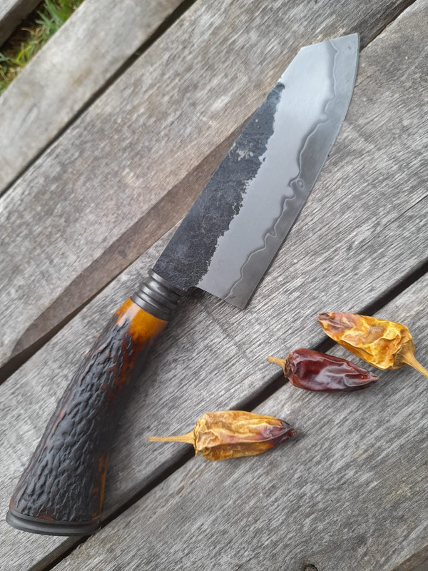 Today I am selling this beautiful multipurpose knife, I have made it in San Mai steel, with a 1070 center and 420 stainless steel sides.
