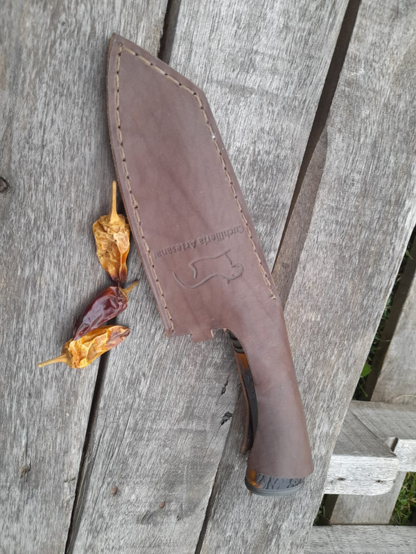 The sheath is made of leather made to measure for the knife.