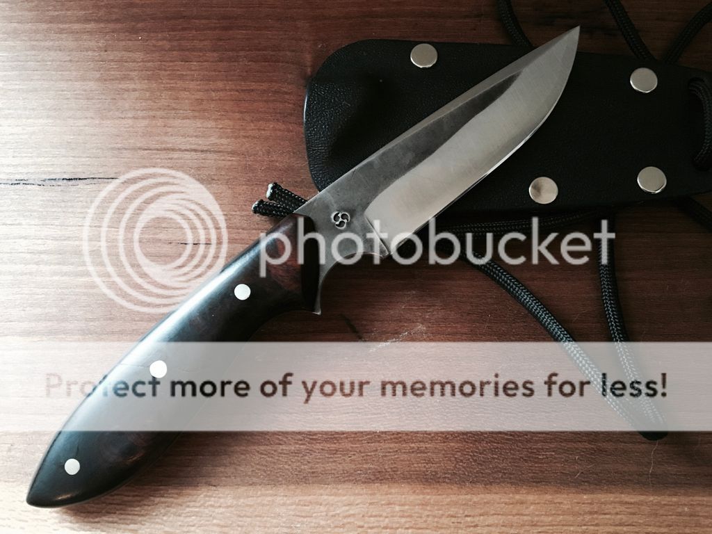 Ironwood scales 3" cutting edge 7 1/4 OAL. has some scratches on the blade from the kydex sheath. (paid $265 for it at KSF)