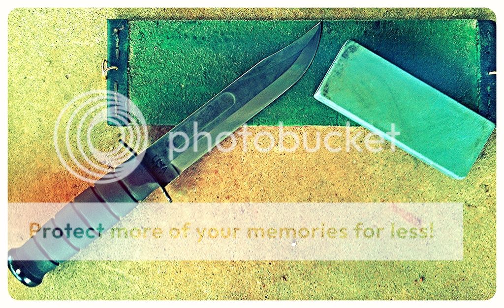 After completing my last thread about working on my uncle in laws KA-BAR USMC, I found myself going through my photobucket grabbing pics of my 1211. Its a blade I have had for a minute or two, but has undergone a couple different remodels. This is a knife I have thoroughly enjoyed and continues to beat out other blades for belt time. Even at its size its a very carry friendly blade. This is because of the small footprint it has with its leather sheath, and to me its light weight. The only hang up I had with the knife was it was not too great at doing all of the cutting tasks I ask of a knife every day which includes foodprep. After dialing in the grind on it though, it now performs very well. KA-BAR has since changed the grind on these knives for the better (higher saber). Either way, these are some great blades that inspire both passion and resentment, and have filled the hands of soldiers, campers, men, and women alike. It is one blade I wont ever part with. This thread is just kind of a collection of pictures over the years of this one knife.