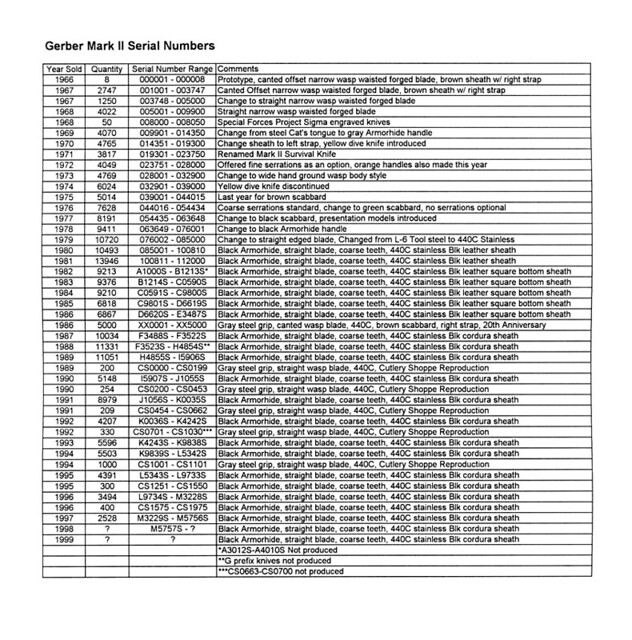 Gerber Mark II Serial Numbers by Trent Rock's Visual Vices, on Flickr
