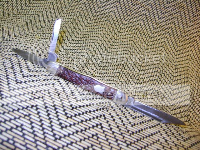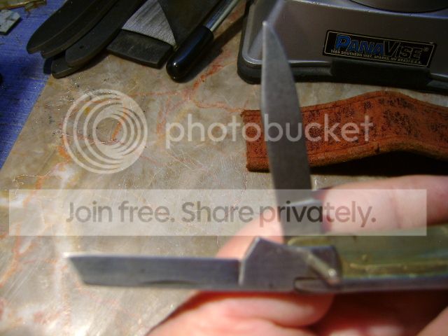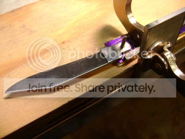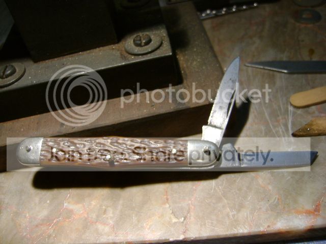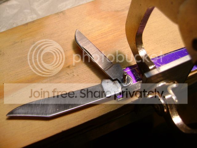 H’mmmmm. My wife is laughing at me now as I jumble the pieces into various knife configurations, a whittler and swell center, double ended jack. She quietly (that means without rolling her eyes btw) but wisely asks if those blades are still sharp? Good point………………… I dull them with a file.