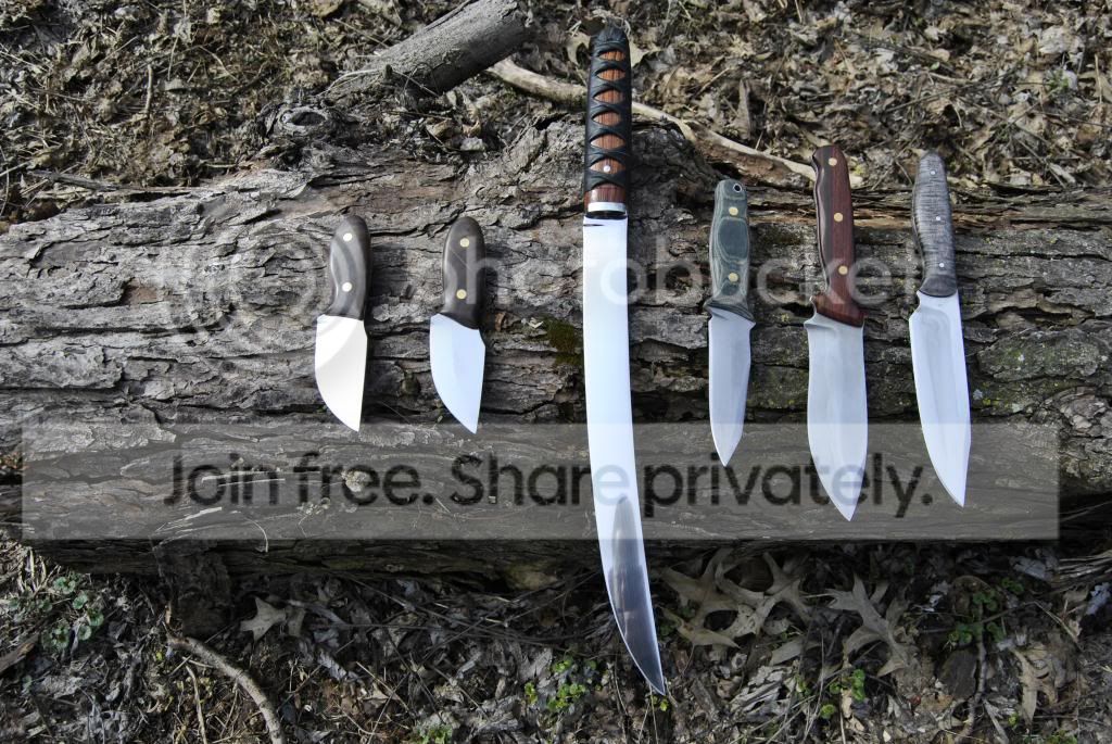 I have thanked this forum before for all of the knowledge it has given me. Now I'd like to show you what I have made so far. I have only finished 6 blades in the last 5 months due to work and a new baby, but they have been a very good learning experience. I just took some better pics of all of my work, and I will post them in order of first made to last made. As always, critique is welcomed. Its how I learned a lot of what I have done in the first place. Thanks for looking!