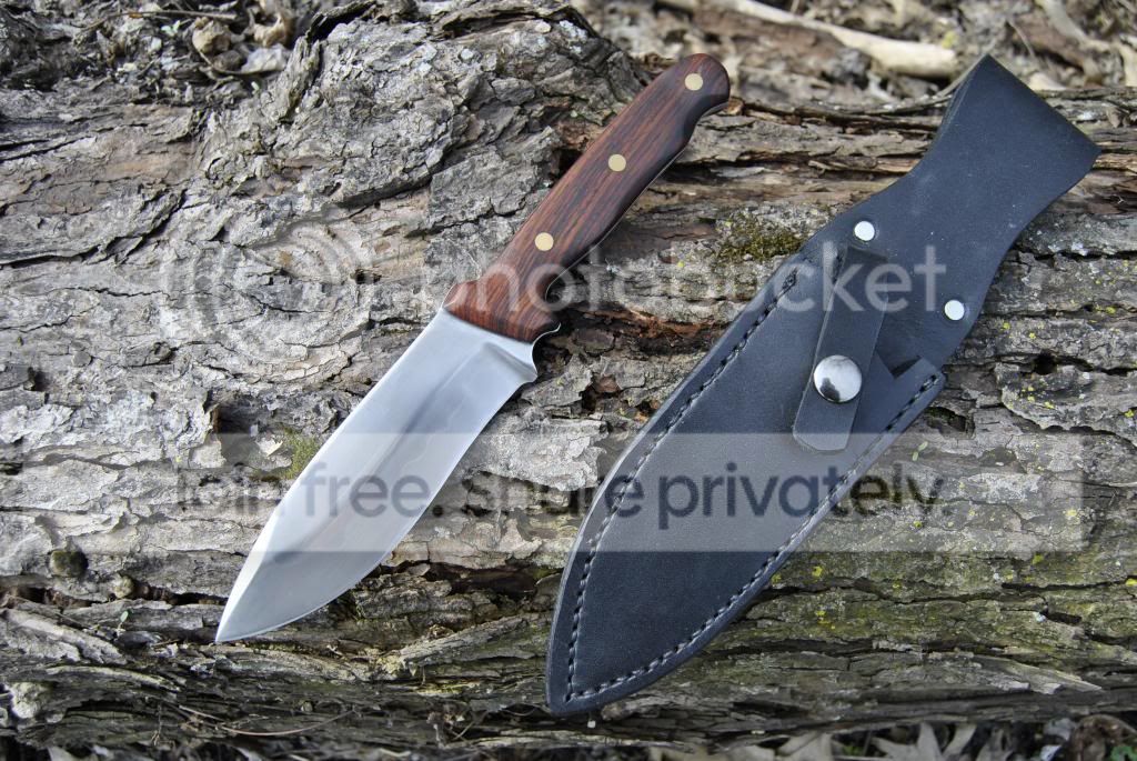 My first knife, 1095 with hamon, cocobolo scales. I received criticism on this one about the handle shape and pin placement. Notes taken, and hopefully improved on.