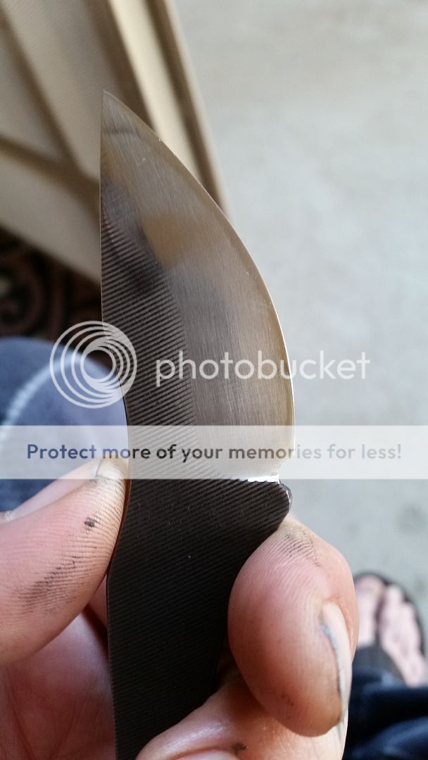 Made from a scrap of .200" (not mic'd, eyeballed) Simmonds file... I was messing around with edge quenching and I finished this last night. As I was cleaning it up, I saw this stain along the edge...