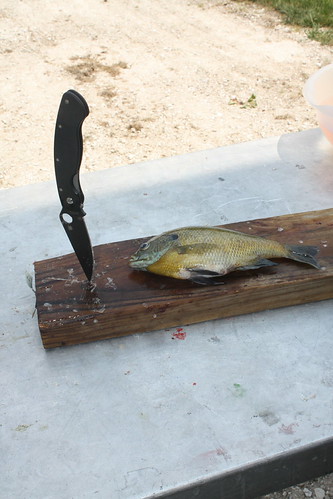 Reach to the pocket, and get to work. I must have filleted 30 fish with the Military. Not the greatest knife for the task, but it did just fine. Heading out to the fish fry now...