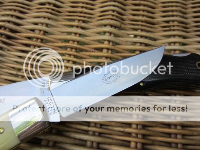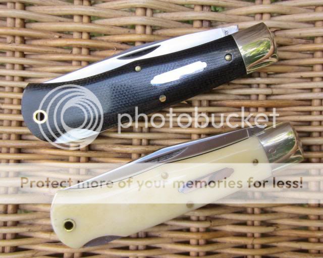 The first is in black canvass micarta and the other in ivory bone.
