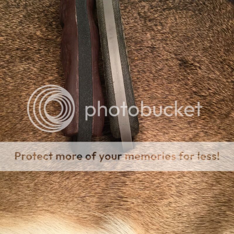 So I picked up both of these recently along with the Buy Brown sheaths for my BIGT NMFSH and TGLB. I love how thick the HOFSH is, but not sure I like the red/ black g10. Thats east enough to change I guess. The SH Ergo is double cut or bead blasted prototype with a more severe angle to handle. No clue as to how many are actually out there, I was told only a few. Its new from what I can tell with only a few marks on the blade from the kydex sheath. Found a couple threads along with what the seller gave me to look at. Any info would be appreciated. Enjoy the pics and let me know what you guys think!
