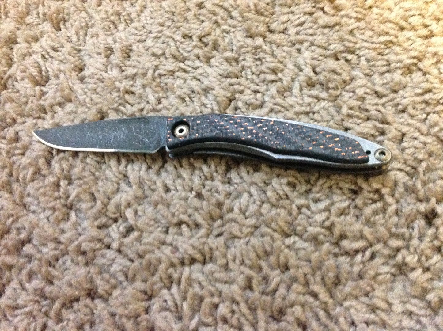 I got back into town after being away for thanksgiving and my new Mnandi was waiting in my mailbox! I sent my cocobolo Mnandi off to Eric (Shepard Custom Concealment) about 6 months ago after a long search to find someone willing to take on my carbon fiber inlay project. Eric did a great job, the finish is even better than the work that Berry H. did on the annual in the last picture. I just wanted to show off, especially since it was all of you that caused me to want this knife!
