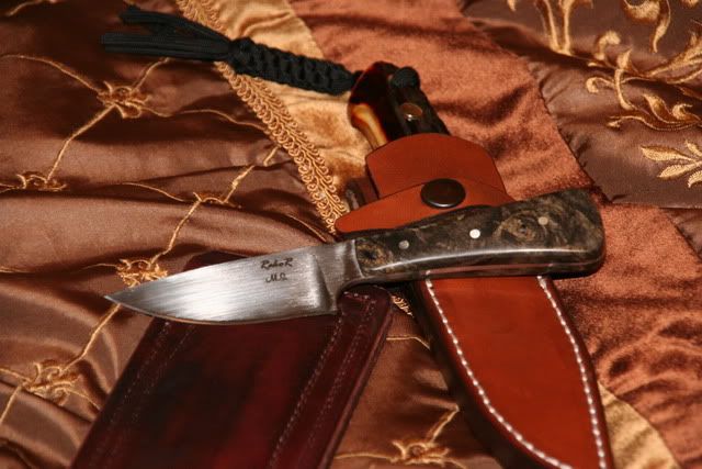 Here is my new knife called the pocket medicine from Ray Kirk...He is an awesome ABS Master Bladesmith with very reasonable prices. The blade is about 3 inches long and the over all length is about 6.5 inches long. The handle is made out of buckeye burl and it is shaving sharp directly from RakeR knives. Oh yea the steel is hand forged from 52100 ball bearing steel pounded it the old way with hamers and anvils! The best part was the cost was like just over what a Benchmade Triage would set you back.