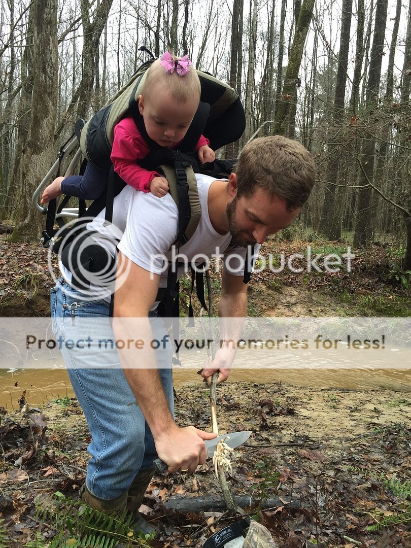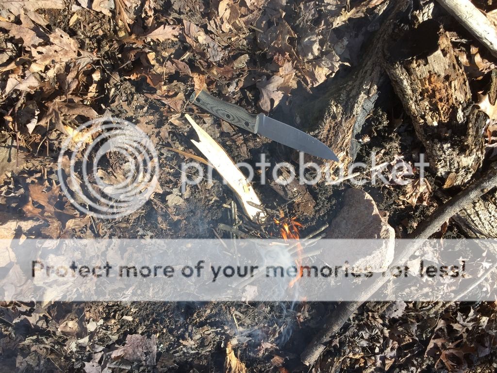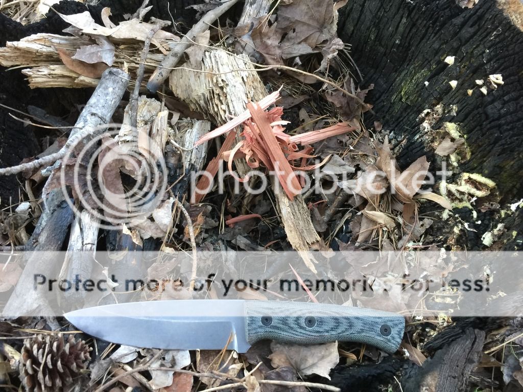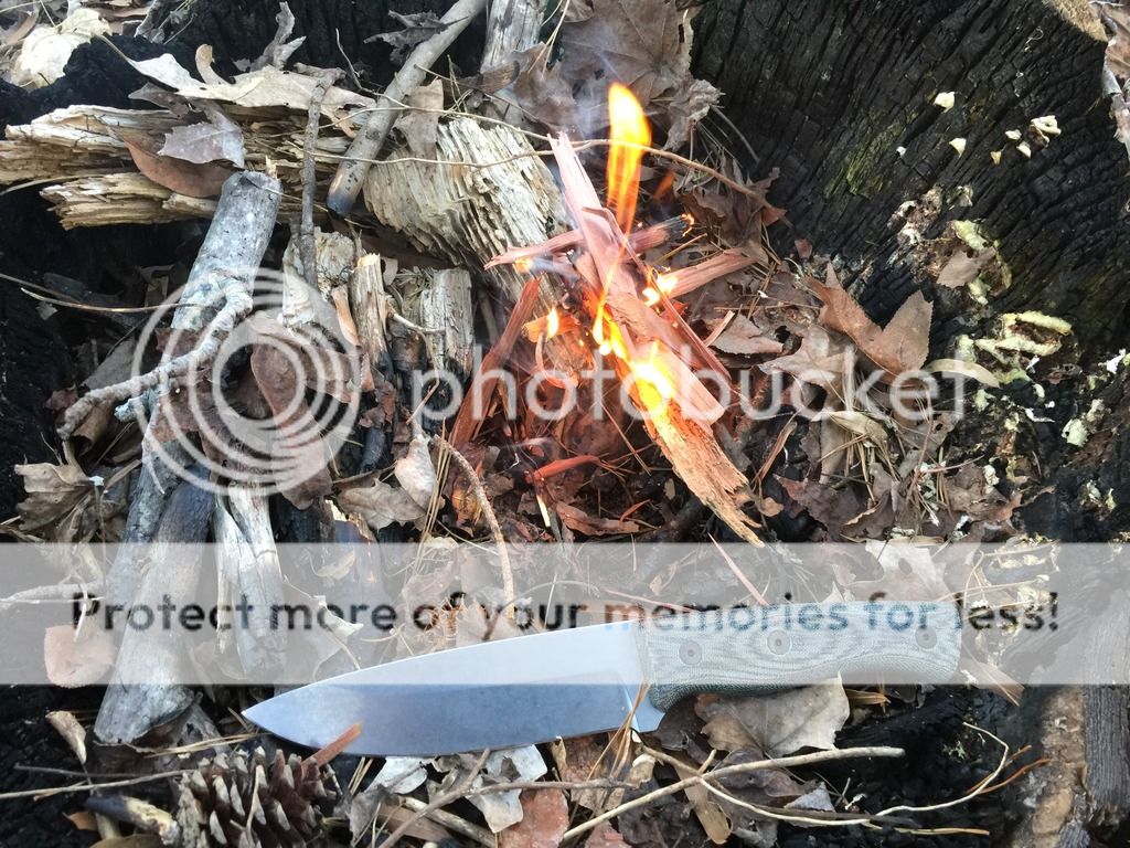 My daughter usually accompanies me on my outdoor adventures to we went out the following day to see if we could use the knife to build a fire. If you were around the Carolinas during Christmas last year you know it was rainy and hot, so I (we) felt this would be an appropriate first challenge for the Duke. With the knife, a hat to catch shavings, and an ExoTac striker we were able to make a fire. Thus the Duke is now daughter approved. Ill keep it!