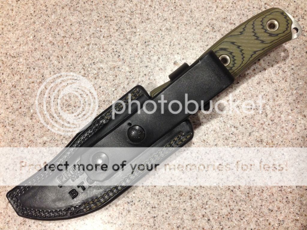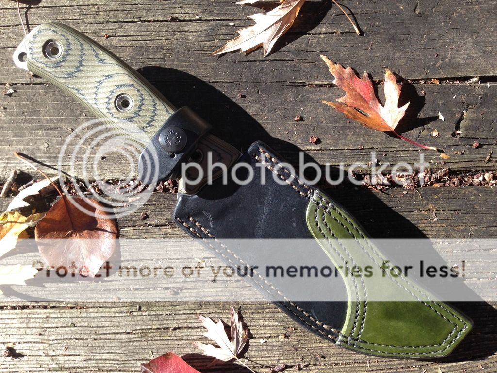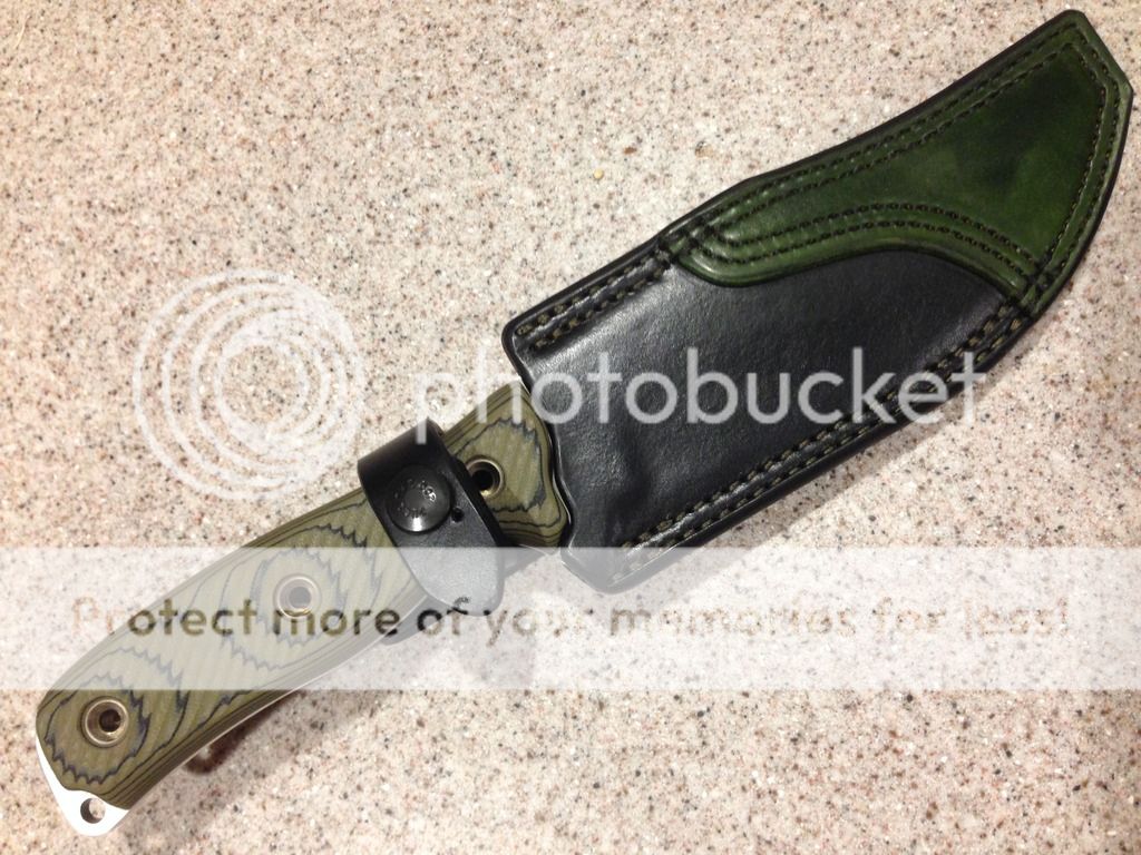 Wow, that green and black G10 looks very classy against the satin, and the Pirtle sheath dresses it up perfectly without getting gaudy. Really nice work and a beautiful result all around--truly a one-of-a-kind treasure.